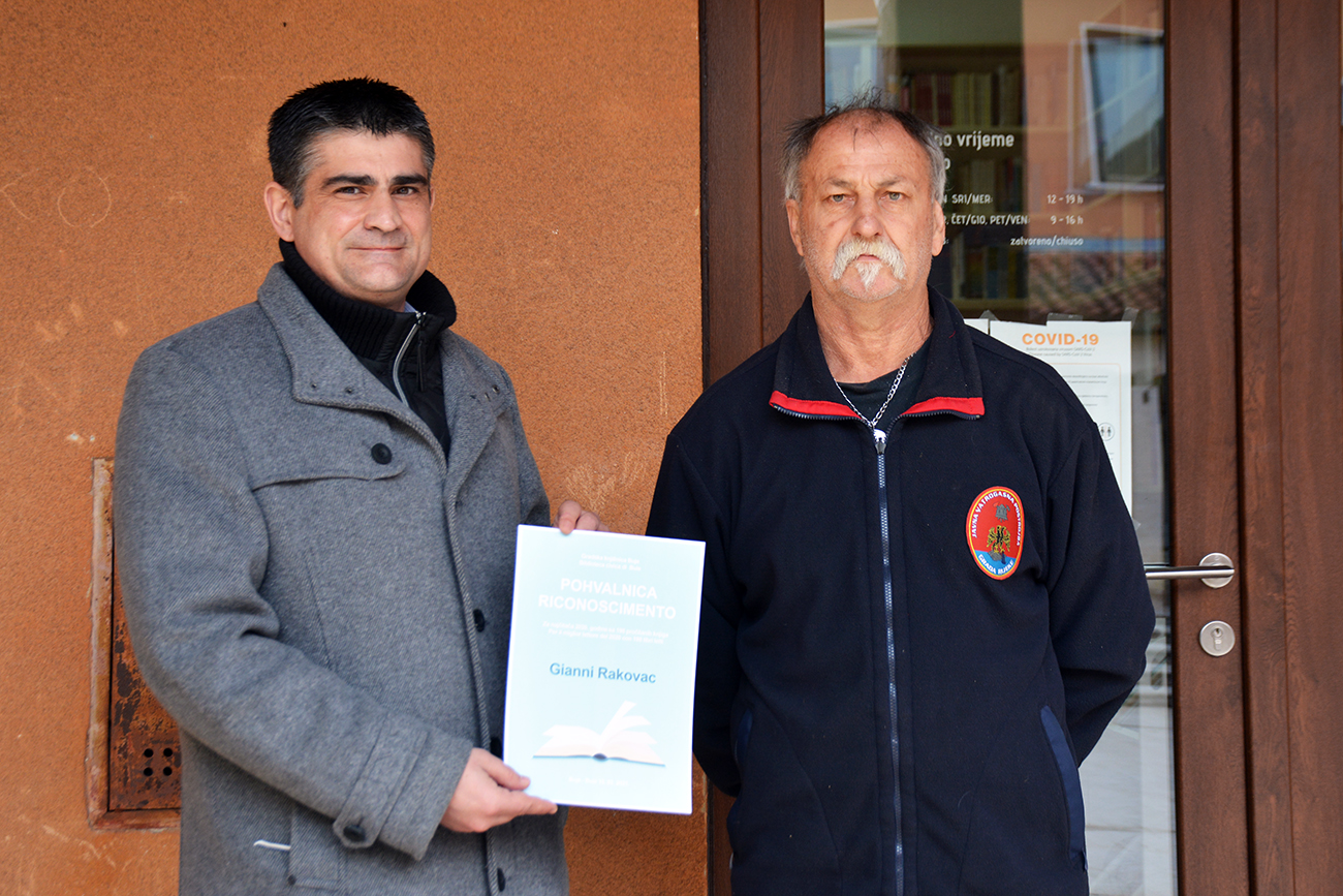Nakon što je pred koji dan Gianniju Rakovcu uručen poklon paket od strane bujske Gradske knjižnice, danas je istome dodijeljena pohvalnica od strane gradonačelnika Vižintina.