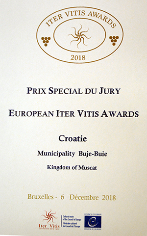 06. prosinca Grad Buje u Bruxellesu je osvojio prestižnu nagradu, odnosno Posebno priznanje Euopean Iter Vitis Awardsa.