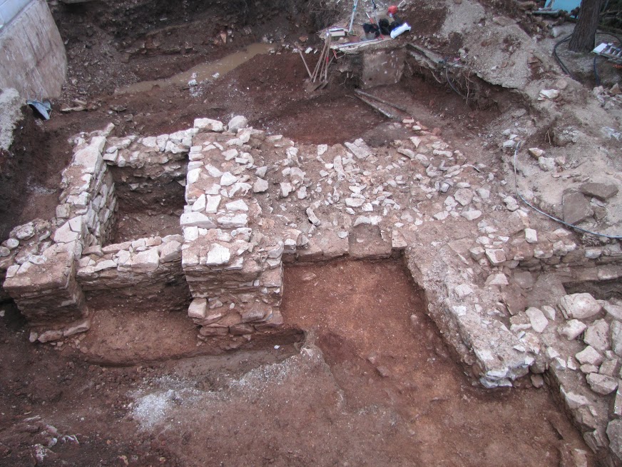 Otkrivene zidine pružaju se u smjeru sjever-jug i paralelne su s linijom postojećih zidina, ali su od njih udaljene šest metara, što govori od širenju grada u 13. stoljeću. Izgrađene su na način da su naprije napravljena vanjska lica zidina, a unutrašnjost je ispunjena nabacanim kamenjem i žbukom. Svojom impozantnom debljinom od 200-220 cm značajno nadmašuju postojeće zidine iz 13. stoljeća“. Zidine su odvojene prolazom koji je kasnije bočno ojačan nadograđenim strukturama, vjerojatno za ojačavanje ulaza. Prestankom njihovog korištenja, zazidan je prolaz koji je kasnije iskorišten kao prostor za ukop, odnosno za grobnicu s većim brojem pokojnika, otkrivenu također prilikom ovog arheološkog istraživanja. Osim toga, taj se prostor korstio i za druge ukope, pa su tako pored grobnice pronađena još tri dječja ukopa. Dječji grobovi bili su pažljivo napravljeni od kamenih ploča koje su činile grobnu konstrukciju u obliku sanduka.