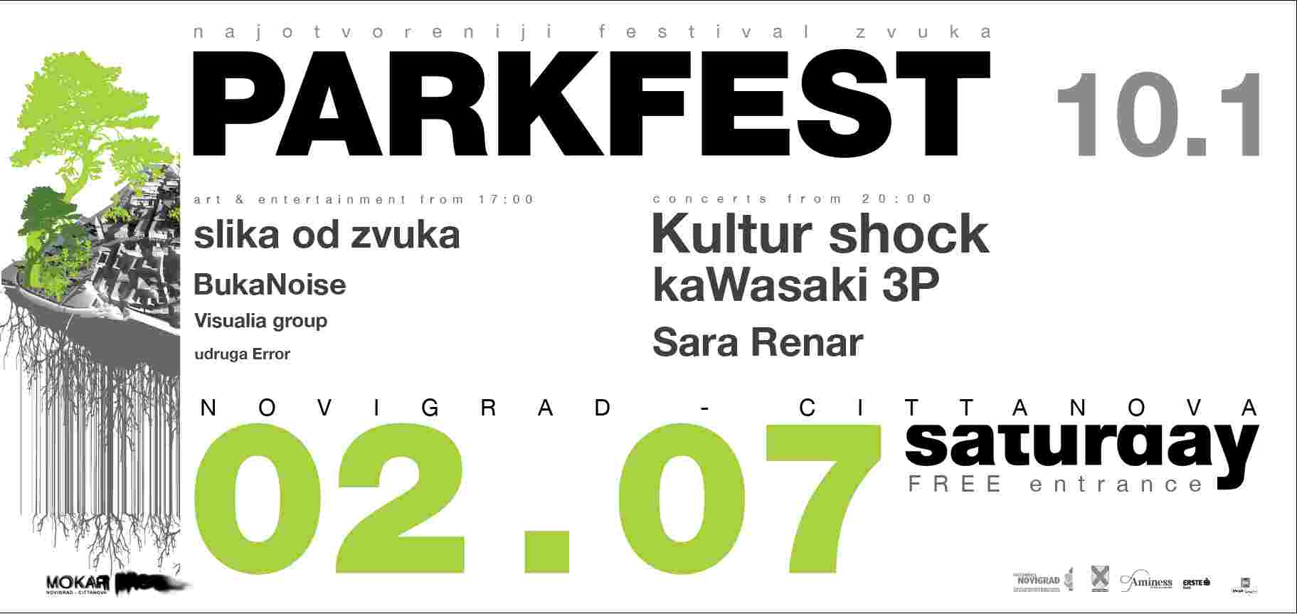 Parkfest je oduvijek bio poznat po dobrim koncertima. Stoga ove godine puni park publikom koja će uživati u koncertu grupe Kultur Shock iz dalekog Seattlea. Njihova glazba se može opisati kao punk, rock i heavy metal s primjesama tradicionalne narodne glazbe s područja Balkana. Taj spoj je i logičan jer su članovi benda rodom iz susjedne Bosne i Hercegovine. Sviraju po Americi i Europi. Ove godine slave 20-tu godišnjicu karijere, a novigradski Parkfest će posjetiti u sklopu svoje europske turneje. Nakon njih na glavnu pozornicu penje se poznati zagrebački punk-rock band Kawasaki 3P. Godinama pune dvorane i dižu atmosferu na raznim festivalima na otvorenome. Nakon nedavnog zagrebačkog INmusic festivala, napokon dolaze u Novigrad, da zatvore Parkfest 10.1. u velikom stilu.