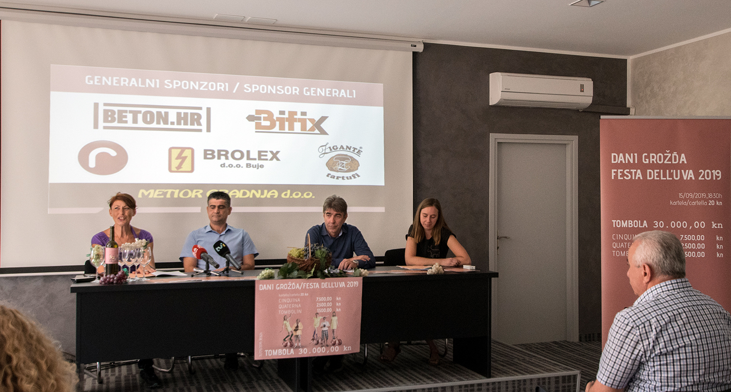 Na današnjoj press konferenciji, održanoj u gradskoj vijećnici u sklopu Pučkog otvorenog učilišta u Bujama, najavljeni su 114. Dani grožđa, koji će se održati od 13. do 15. rujna 2019. u Bujama.