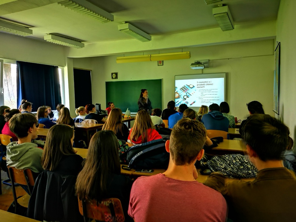 Istog dana, u 13,15 održana je radionica za učenike Talijanske srednje škole – Scuola media superiore italiana „Leonardo da Vinci“ Buie. U prepunoj dvorani kroz interaktivnu radionicu koju je vodila Lara Flego, učenici su mogli saznati puno korisnih i zanimljivih informacija kako o okruženju tako i o globalnoj situaciji u kojoj otpad predstavlja sve veći problem. Uključili su se pitanjima i tražili pojašnjenja kako bi i sami što bolje sagledali situaciju gdje zbog suvremenog načina života količina proizvedenog otpada konstantno raste, a na nama je da kroz pravilno zbrinjavanje te adekvatnu reciklažu i preradu gorući problem i troškove zbrinjavanja smanjimo na najmanju moguću mjeru.