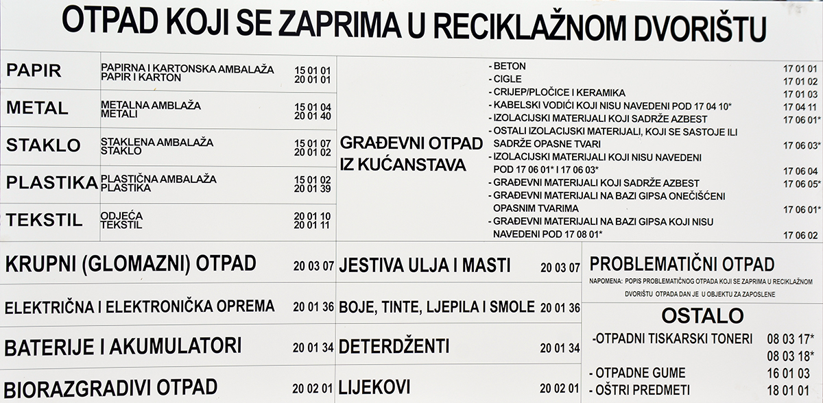 Izuzetak po pitanju besplatnog odlaganja čine tri vrste otpada za koje postoji količinsko ograničenje. Naime, građani navedenog područja moći će besplatno godišnje odložiti do 6m3 zelenog otpada, do 400kg građevniskog otpada i 200kg azbestne ploče.