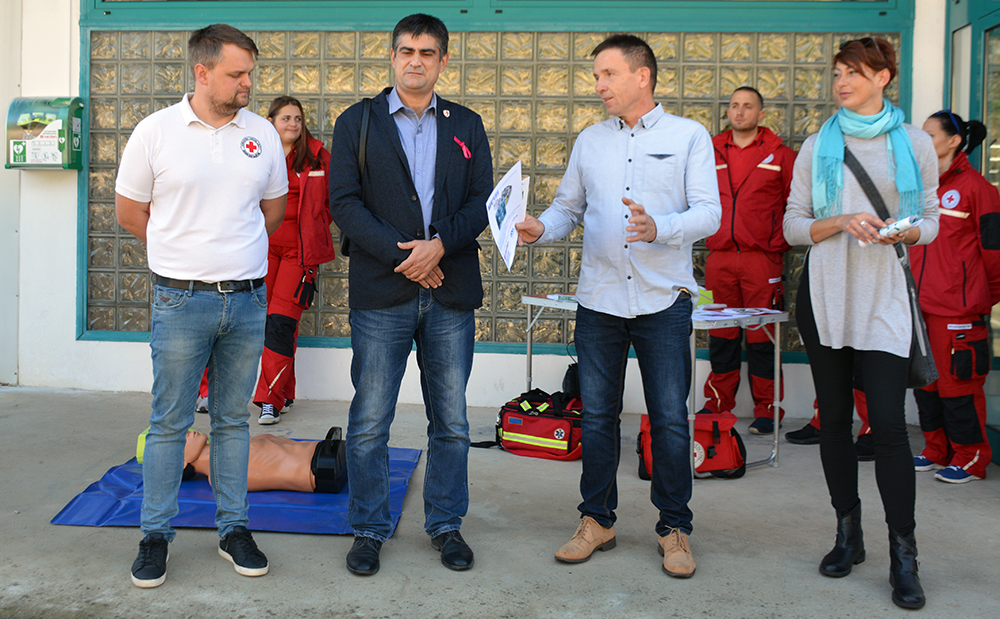 Na inauguraciji uređaja nazočili su gradonačelnik Fabrizio Vižintin, ravnatelj Crvenog križa Bujštine Hrvoje Kovačević, ravnateljica POU Rosanna Bubola, vinar/poduzetnik Gianfranco Kozlović, te ravnatelji škola i pojedini učenici.