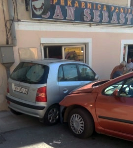 U tom trenutku nitko nije izlazio/ulazio iz pekare pa, na svu sreću, nitko nije stradao, dok je na oba vozila nastala materijalna šteta. Oštećenje je nastalo i na kamenom okviru ulaza, pri ćemu je komad kamena odletio u unutanji dio pekare.
