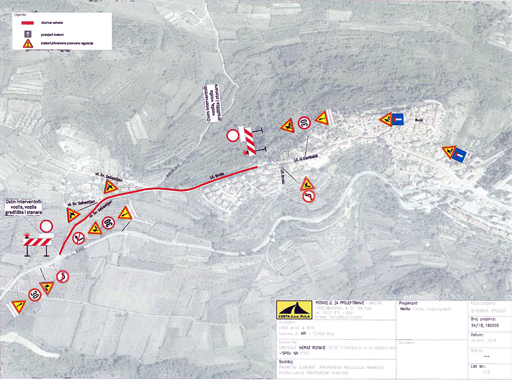 Obavještavamo građane da će se zbog radova na rekonstrukciji ceste u Bujama od ulice G.Garibaldi – Sv Sebastijan- spoj na D300, prometovanje motornim vozilima odvijati prema privremenoj prometnoj signalizaciji. Radovi će započeti u ponedjeljak 03. prosinca a predviđeni završetak radova je za tri tjedna.