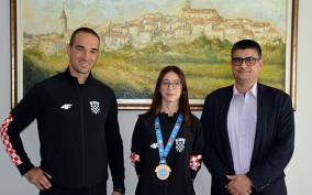 Anđelina Videc iz kickboxing kluba Buja (KBK Buje), nakon sjajnog nastupa na Svjetskom prvenstvu i osvojene brončane medalje u Jesolu, pozvana je od strane gradonačelnika Vižintina, kako bi joj osobno čestitao i uručio znak pažnje.
