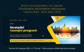 POZIV na radionicu za izradu Strateškog razvojnog programa Grada Buje – Buie, koja će se održati u četvrtak 06. listopada 2022., u 17.30 sati u prostorima Pučkog otvorenog učilišta Buje (kino dvorana).INVITO al laboratioro per la redazione del Programma di Sviluppo Strategico della Città di Buje-Buie,