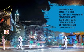S ciljem prevencije širenja zaraze virusom COVID-19, a u skladu s odlukom Stožera za civilnu zaštitu Grada, poduzeće 6.maj, DANAS, 27.3.2020. godine, od 19:00 sati, provoditi će preventivnu mjeru DEZINFEKCIJE ULICA i JAVNIH POVRŠINA na području grada i ostalih naselja.Stoga ljubazno molimo sve naše sugra