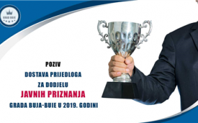 Pozivaju se sve pravne i fizičke osobe da upute svoje prijedloge kandidata za dodjelu nagrada, priznanja i počasti Grada Buja, sukladno Odluci o javnim priznanjima Grada Buja (“Službene novine Grada Buja”, broj 5 /11).