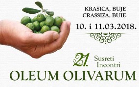 Obavještavamo Vas se i ove godine će se pod pokroviteljstvom Grada Buja, Turističke zajednice Grada Buja i Pučkog otvorenog učilišta Buje organiziraju 21. susreti maslinara „Oleum Olivarum" u Krasici 10. i 11. ožujka 2018. Pozivamo Vas da se pridružite ovoj manifestaciji te svojim učešćem do