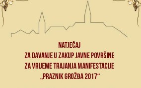 Raspisuje se Natječaj za davanje u zakup javne površine za vrijeme trajanja manifestacije „Praznik grožđa 2017“.