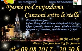 Turistička zajednica Grada Buja i Zajednica Talijana Buje, u srijedu 9. kolovoza sa početkom u 20:30 h organiziraju manifestaciju pod nazivom „Pjesme pod zvijezdama“ gdje uz nastup pjevača i pjevačkih skupina amatera na Trgu sv. Servula u bujskoj starogradskoj jezgri, gosti mogu uz glazbu uživati i u promat