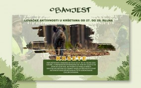 Od jučer, 27. do 29. rujna u vremenskim intervalima od 19:00 do 23:30 te od 05:00 do 07:00 sati na području naselja Kršete (unutar 100 metara od granice naselja) provode se lovne aktivnosti radi sprječavanja šteta uzrokovanih divljim svinjama.
