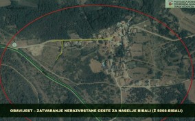 Trgovačko društvo ISTARSKI VODOVOD d.o.o., Sv. Ivan 8, Buzet, OIB 13269963589, privremeno će zatvoriti za promet nerazvrstanu cestu za naselje Bibali i dio ulice u naselju Bibali radi izvođenja građevinskih radova. Korisnik će prometnu površinu koristiti i ulicu zatvorati za promet od 05.03.2024. do 19.03.2024.