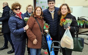 Ispred gradske uprave Grada Buja, povodom Dana žena, danas je postavljen štand na kojem su u jutarnjim satima članovi SDP-a i IDS-a darovali žene sa cvijećem.