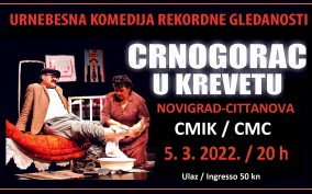 U subotu 5. ožujka s početkom u 20 sati CMIK će ugostiti predstavu „Crnogorac u krevetu“, najgledaniju crnogorsku komediju svih vremena, klasičnu komediju koja se bavi crnogorskim načinom života i običajima i na duhovit način govori o svim životnim fazama, a naročito duhovito opisuje život prosječnog crnogorsk