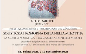 Pozivamo Vas na predstavljanje zbirke notnog izdanja Solistička i komorna djela Nella Milottija (povodom obilježavanja 10. obljetnice skladateljeve smrti) U nedjelju, 12. rujna 2021. s početkom u 18,00 sati. Muzej-Museo Lapidarium, Novigrad, Veliki trg, Novigrad. O zbirci će govoriti autorica, izv. prof. dr. sc. Ivana Paula Gorta