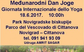 Pridružite nam se u nedjelju, 18.06. u 10 sati i proslavite zajedno sa nama 3. UN-ov Međunarodni dan joge, na predivnoj lokaciji uz more u Novigradu u Parku Novigradske biskupije. Povedite članove svoje obitelji i prijatelje, i zajedno provedite prijepodne u opuštenom vježbanju asana i pranayame, te saznajte nešto n