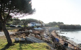 Dovršeni su radovi na izgradnji potpornog obalnog zida u predjelu iza rta Mujela prema Kastaniji, u dijelu plaže gdje završava asfaltirana obalna šetnica od Karpinjana do Kastanije. Potporni zid izgrađen je jer je more potkopavalo obalu, te tako došlo gotovo do same šetnice.