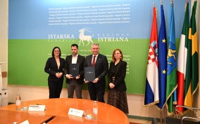 starski župan Boris Miletić danas je u sjedištu Istarske županije u Puli s ravnateljem Županijske uprave za ceste Istarske županije Davidom Stankićem, potpisao Ugovor o namjenskom utrošku sredstava za dvojezičnu prometnu signalizaciju. Svečanom potpisivanju prisustvovale su i zamjenica župana Jessica Acquavita