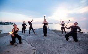 Večeras na porečkoj rivi pokraj hotela Palazzo uz zalazak sunca (cc 20.00 sati) posjetitelji će imati priliku uživati u hipnotizirajućem plesu „Melting sunset“ uz vatrene rekvizite za ispraćaj zalaska sunca. Opuštajuća atmosfera uz ambijentalnu glazbu ponuditi će posjetiteljima mogućnost promatranja atrakt