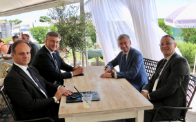 Istarski župan Boris Miletić, zajedno s pročelnikom Kabineta župana Ivanom Glušcem, jučer je održao u Balama radni sastanak s predsjednikom Vlade Republike Hrvatske Andrejom Plenkovićem i predstojnikom Ureda predsjednika Vlade Zvonimirom Frka-Petešićem. Tom prilikom razgovaralo se o strateškim projektima i
