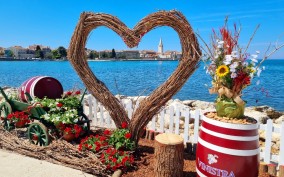 Popularni photopoint na porečkoj Peškeri – veliko, crveno srce i ograda s natpisom Poreč-Parenzo dobili su novo ruho ususret najvećoj hrvatskoj izložbi vina Vinistra, koja se održava od 5. do 7. svibnja u dvorani Žatika, kao i za vikend nakon kada je Poreč domaćin najprestižnijem ocjenjivanju vina u svijetu Conc