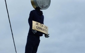 Predstavnici maškara iz mjesnog odbora Nova Vas, jedne od najdugovječnijih i najbrojnijih maškaranih skupina u Poreču, objesile su pusta, glavnog krivca za sve lanjske nedaće, na poznatom palunu u centru mjesta.