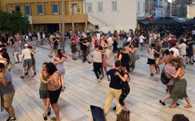 U petak navečer, cijeli je Trg slobode zaplesao u ritmu tanga. Hrvatsko udruženje tango plesača, već desetak godina organizira susrete i međunarodnu školu tanga u Poreču, pa se tako i ove godine