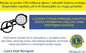 Lions klub Novigrad pridružuje se regionalnoj akciji Lionsa, akciji za preko 150 milijuna djece i odraslih kojima trebaju dioptrijske naočale, ali si ih financijski ne mogu priuštiti.
