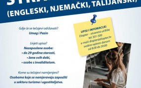 U sklopu projekta REI II Diopter – Otvoreno učilište Pula nastavlja s provođenjem aktivnosti pod nazivom „Intervencije na tržištu rada Istarske županije“, a u sklopu kojeg je i organizacija besplatnih specijaliziranih tečajeva stranih jezika za engleski, njemački i talijanski jezik.