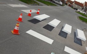 Rovinj je prvi grad u Istri i među prvima u Hrvatskoj dobio 3D pješački prijelaz. Smješten je u blizini Osnovne škole Jurja Dobrile. Njegova svrha je povećati sigurnost prvenstveno učenika, ali i ostalih sudionika u prometu. Trodimenzionalni pješački prijelaz optička je iluzija. Vozače podsje