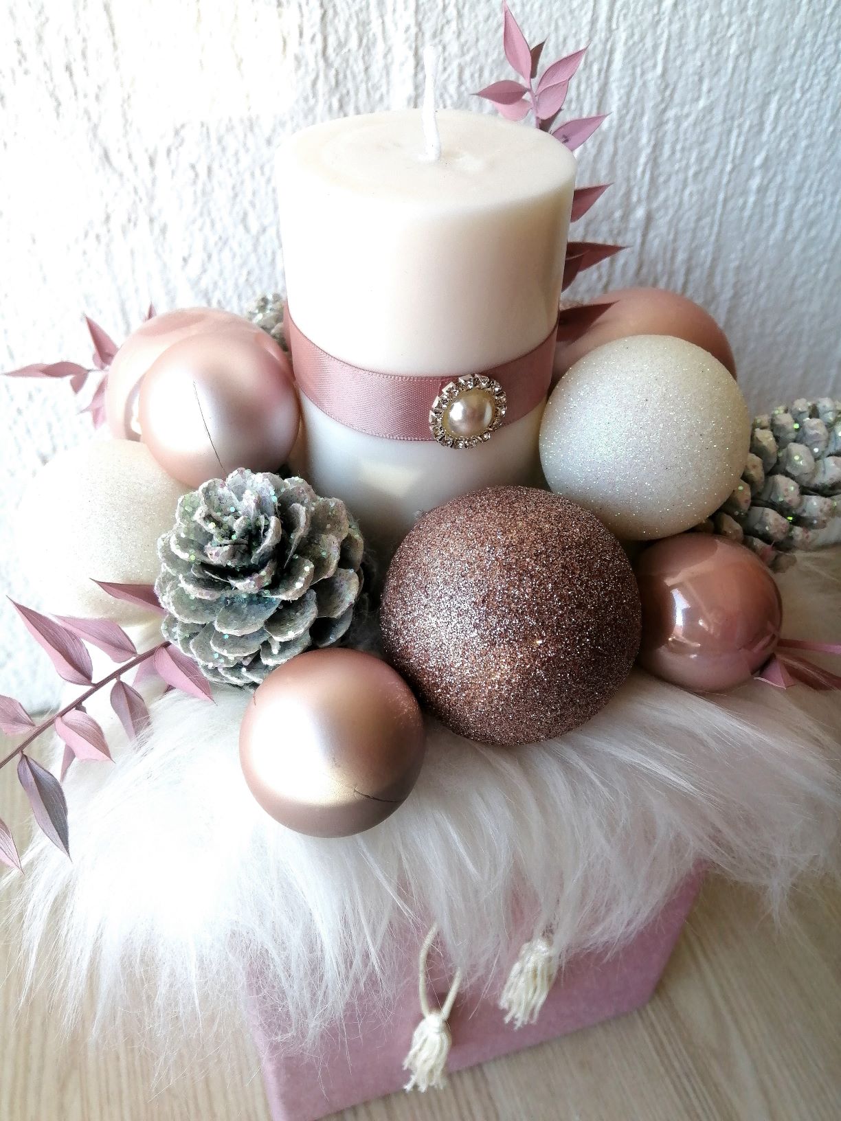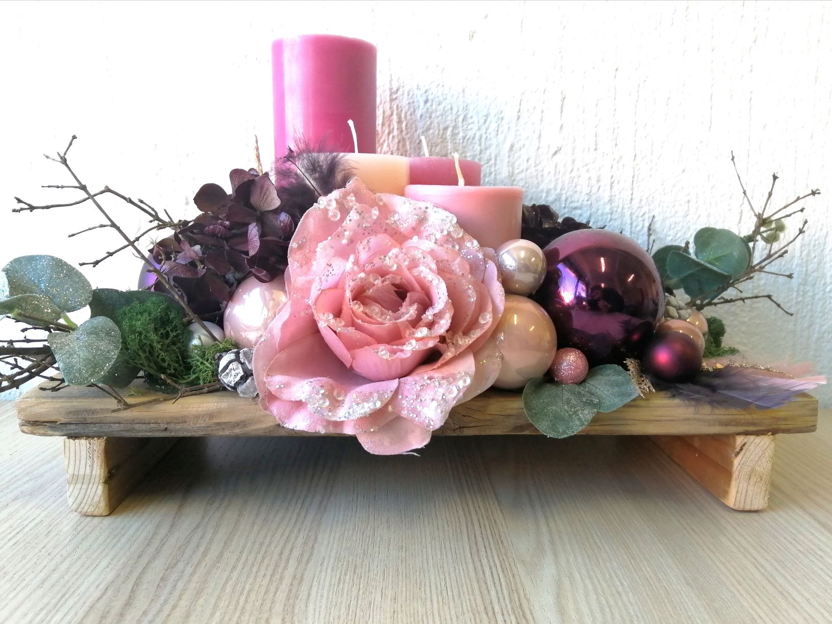 Sada su najtraženiji artikli personalizirani božićni vijenci za vrata, na kojima stavim natpis po želji, najčešće prezime ili logo tvrtke. Isto tako su sada traženi adventi i razne Božićne dekoracije. Nedavno sam dogovorila i suradnju sa lokalnim vinarima i maslinarima, pa krećemo sa izradom "Gift-box-ova". Radi se o prigodnim Božićnim poklon paketima sa lokalnim vinima, maslinovim uljima i rakijama koje upakiram u ručno rađene drvene sanduke i ukrasim prigodnim dekoracijama.