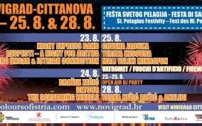 Novigrad će i ove godine višednevnom feštom svetog Pelagija obilježiti Dan Grada i mjesnog sveca zaštitnika. Od 23. do 28. kolovoza pripremljen je raznovrstan sportski, kulturni i zabavno-glazbeni program, uz uobičajene protokolarne sadržaje, a sve popraćeno bogatom eno-gastronomskom ponudom na &scaron
