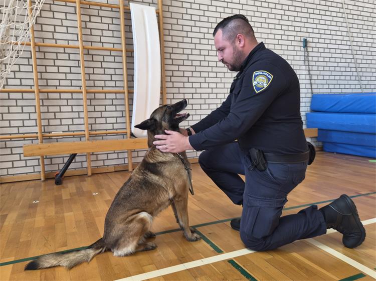 Uslijedila je vježba poznate inspektorice Bele koja je sa svojim vodičem Tomislavom Dubcem pokazala kako otkriva drogu sakrivenu u putnim torbama. S Belom nema šale kada je u pitanju posao, ali zato je rado pristala na fotografiranje s djecom koja su poželjela uspomenu s četveronožnom policijskom inspektoricom.