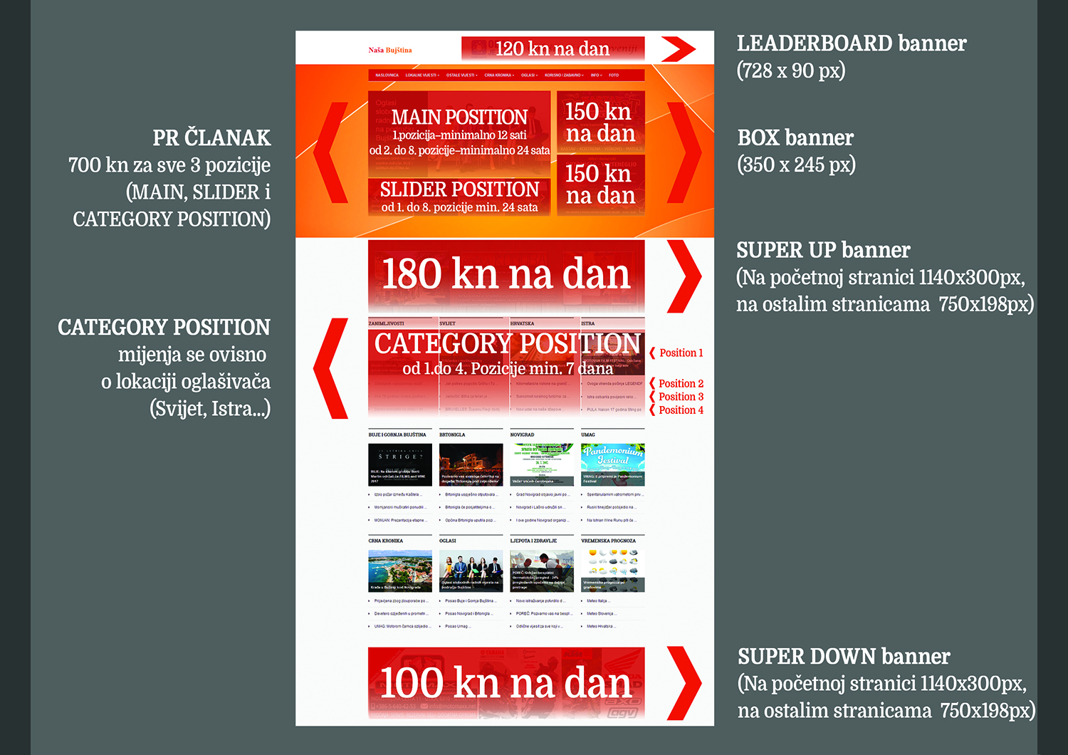 *Vremenski minimum oglašavanja od 10 dana. PDV nije uključen u cijenu.