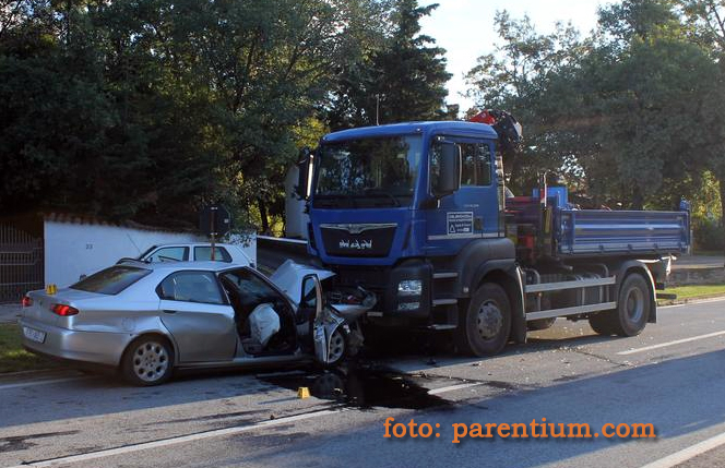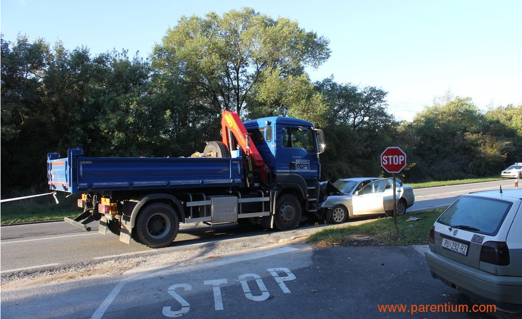 Jutros u 7:53 na cesti D-302 u Buićima blizu Poreča (kod Istarske konobe) došlo je do teške prometne nesreće.Riječ je o frontalnom sudaru osobnog i teretnog vozila, uslijed čega je vozać osobnog vozila pulskih registarskih oznaka, zadio teške ozlijede.