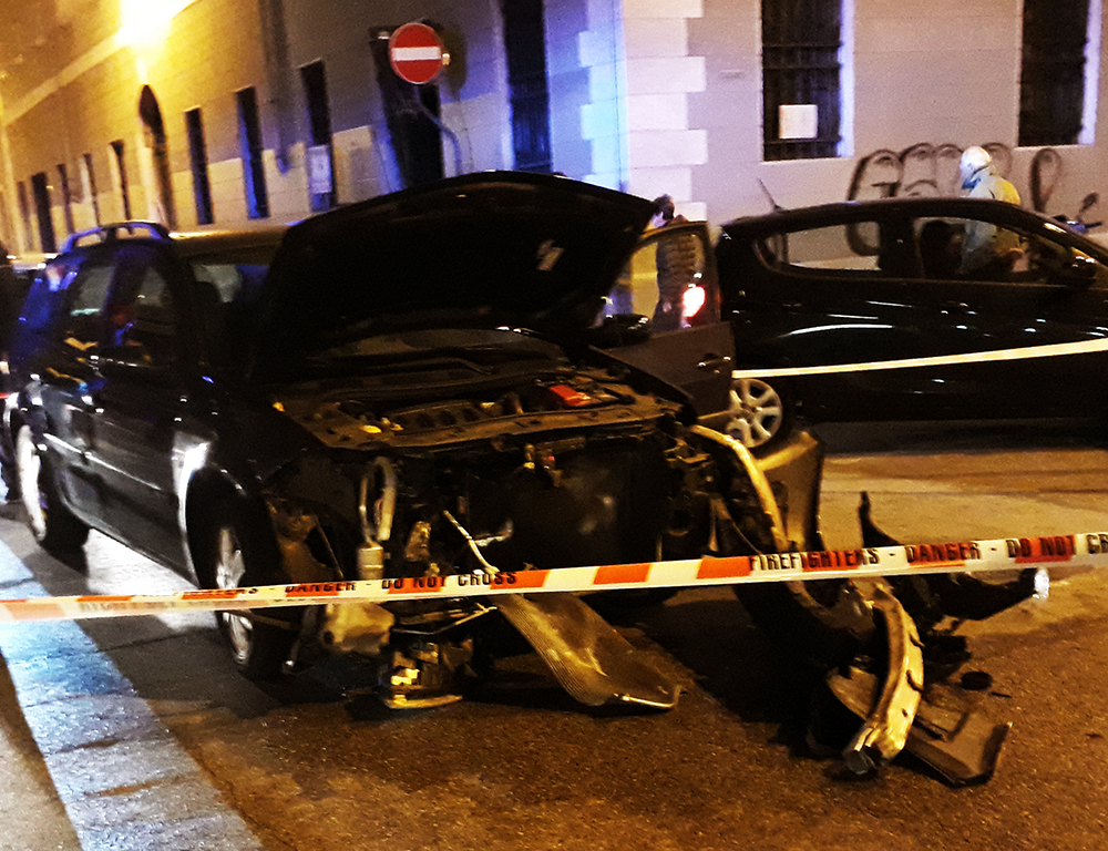 U tom trenutku nalazili smo se nekoliko ulica udaljeni, te smo čuli sirene interventnih vozila koja su se kretala prema raskrižju navedenih ulica. Kada smo stigli do mjesta nesreće zatekli smo oštećeno vozilo i motocikl u ležećem položaju, a pokraj njega su se nalazili dijelovi karoserije i tragovi krvi.