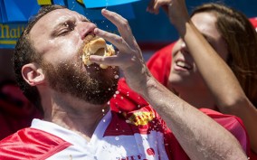 Dugogodišnji šampion Joey 'Jaws' Chestnut ponovo je u ponedjeljak vratio titulu najboljeg, osvojivši pobjedu na godišnjem takmičenju u jedenju hot-dogova u New Yorku, gdje je u 10 minuta pojeo 70 kobasica u pecivu srušivši vlastiti rekord.