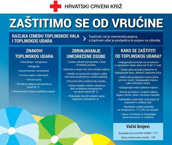 U posljednjem desetljeću prisutan je trend porasta temperature u ljetnom razdoblju što utječe na zdravstveno stanje stanovništva. U Europi je zabilježen porast smrtnosti povezan s velikim vrućinama, dok procjene za Europu ukazuju na vjerojatnost povećanja zdravstvenih rizika zbog toplinskih valova koji uzrokuju ozbiljne zdravstvene i socijalne posljedice. Kako pravovremene preventivne mjere mogu umanjiti broj umrlih od toplinskih valova, donosimo vam preporuke za zaštitu od velikih vrućina.