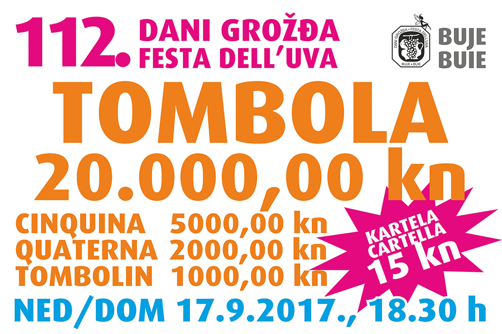 Danas u 18:30 počitnje tradicionalna tombola koja donosi bogati novčani nagradni fond kako slijedi: