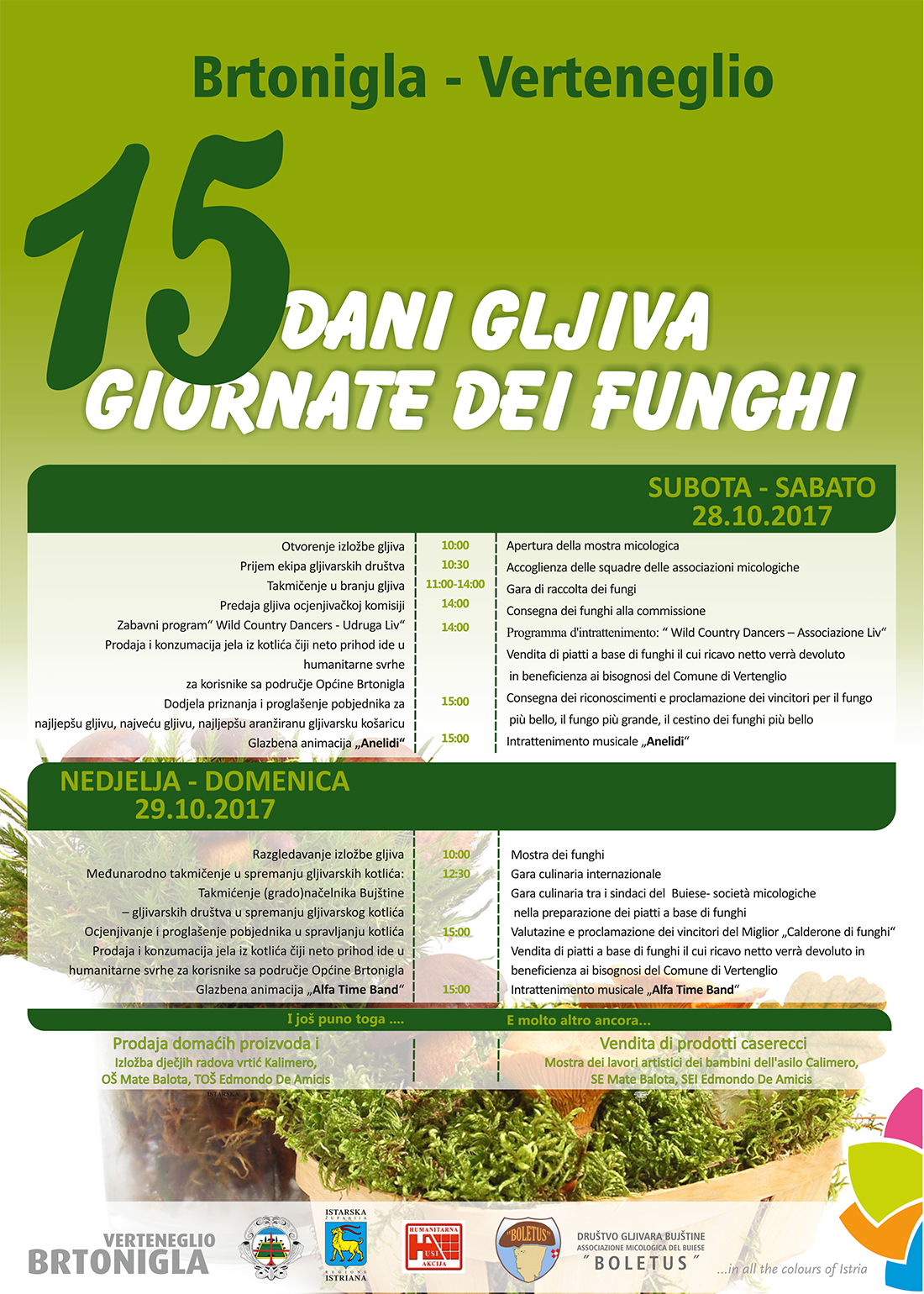 Organizator manifestacije, gljivarska udruga Bolletus, uz financijsku pomoć Općine Brtonigla i Turističke zajednice Općine Brtonigla, prirediti će navedeni događaj, koji će imati i humanitarnu notu.