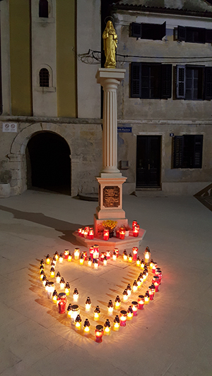 Uslijedila je procesija do Gospinog kipa u dvorištu crkve Majke Milosrđa uz blagoslov i paljenje svijeća, ćemu su uz ostale prisutne prisustvovali i predstavnici Grada, tj. dogradonačelnica Jessiva Aqcuavita i predsjednika gradskog vijeća Rino Duniš . Isti su se obratili prisutnima sa prigodnim govorom.