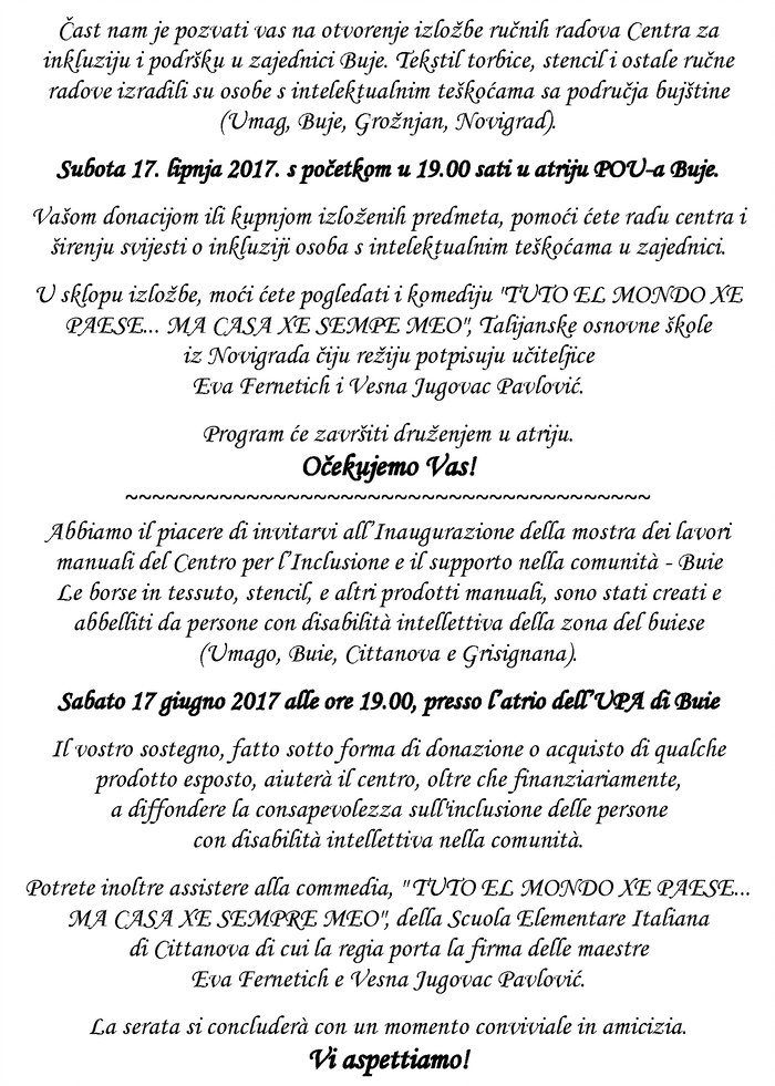 Udruga Otvoreno srce vas poziva na izložbu ručnih radova Centra za inkluziju i podršku u zajednici Buje