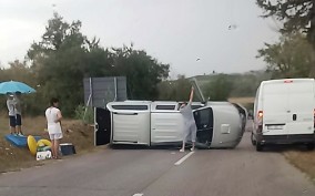 Naime, na cesti se nalazilo vozilo, okrenuto na boku. Na mjesto događaja je bila policija.