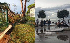 Danas poslijepodne Istru je zahvatilo nevrijeme koje je kulimiralo na području Umaga, uz udare vjetra od 150 km/h, koji su na moru uzrokovali veći broj pijavica. Na području cijelog Umaga došlo je do velikih materijalnih šteta. Urušila su se stabla, letjeli dj