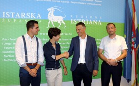 Istarski župan Valter Flego primio je danas, u sjedištu Istarske županije, u Puli, harmonikaša Leonarda Rojnića iz Barbana, svjetskog juniorskog prvaka natjecanja u sviranju dijatonske harmonike. Prijemu su prisustvovali i načelnik Općine Barban Dalibor Paus te Leonardov otac Dragan Rojnić i mentor Luka