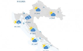 Kako piše DHMZ, posljednjeg dana u 2023. nas očekuje iznadprosječno toplo te razmjerno vjetrovito. Na Jadranu i uz njega promjenljivo, ponegdje i pretežno oblačno s mjestimičnom kišom, češćom na sjevernom Jadranu te u Gorskom kotaru. U središnjim i istočnim krajevima pretežno i djelomice sun