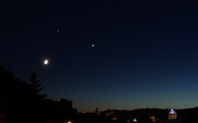 Sinoć se na nebu mogao vidjeti rijedak fenomen. Venera i Jupiter zadnjih su dana vidljivi i golim okom, odmah nakon zalaska sunca. Jupiter je iz dana u dan sve niže, dok se Venera lagano penje, što znači da će se uskoro susresti i prividno biti vrlo blizu jedno drugom. Takvo se poravnanje, kada planeti